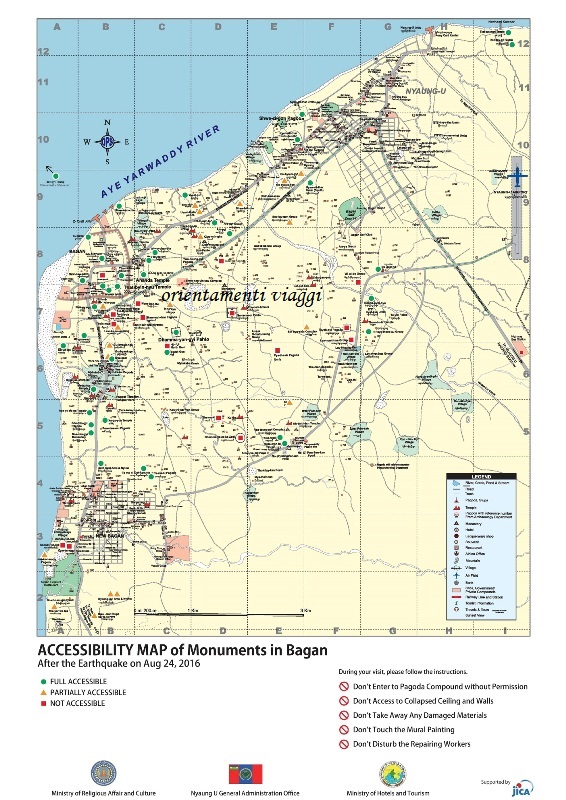 La cartina mostra la situazione dell'area archeologica di Bagan.