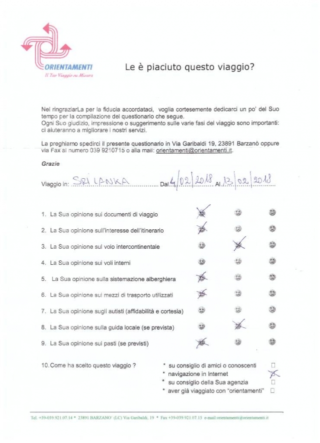 Abbiamo richiesto un Tour di Sri Lanka individuale, organizzato solo per noi. Abbiamo viaggiato con auto privata e autista/guida solo per noi. La natura è bellissima e i monumenti ci hanno sorpreso. Consigliato a tutti. M.G.